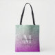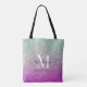 Girly Aqua Blue Pink Ombre Glitter Monogram Name Tote Bag