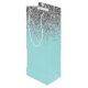 Girly Aqua Blue Silver Glitter Monogram Wine Gift Bag