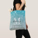 Girly Aqua Blue Silver Ombre Glitter Monogram Name Tote Bag