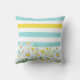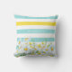 Girly Aqua Stripes With Yellow Daisies and Name Cushion