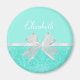 Get dolled up with this cute aqua and turquoise damask pattern magnet with a girly sheer white ribbon tied into a feminine bow made just for the girly girl. Personalize this chic and stylish mint blue and white design by adding your name to the custom template area. Flat printed image, not actual ribbon.