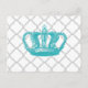 GIRLY AQUA VINTAGE CROWN GREY QUATREFOIL PATTERN POSTCARD