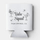 Girly white can coolers for your bachelorette party featuring illustrations of glam party girls sunbathing in cocktail glasses, sparkle stars, "Babe Squad" in a retro script and your party location or other text in simple typography.
