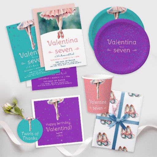 Step into a world of enchantment with our charming napkins, featuring a graceful pastel pink ballerina set against a mesmerising turquoise backdrop. Adorned with whimsical purple stars and a delightful pastel pink curly script, these napkins add a magical touch to any celebration. Perfect for your little one's special day, they are also customisable! Personalise them by adding your own text for a unique and memorable touch.