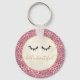 Girly Black Eyelashes Gold Pink Leopard Print Key Ring
