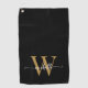 Girly Black Gold Elegant Monogram Name Script Golf Towel