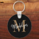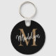 Girly Black Gold Monogram Name Elegant Chic Script Keychain. Easily personalise this modern elegant keychain with your custom monogram and name.