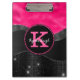 Girly Black Grey Hot Pink Waves Glam Monogram Name Clipboard