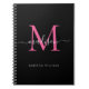 Modern Girly Black Hot Pink Monogram Script Name Initial Notebook