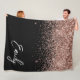 Girly Black Rose Gold Blush Pink Glitter Monogram Fleece Blanket