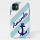 GIRLY BLUE ANCHOR BLUE STRIPES YOUR NAME Case-Mate iPhone CASE
