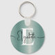 Girly Blue Brushed Metal Monogram and Script Name Key Ring