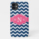 Girly Blue Chevron Pink Monogram Case-Mate iPhone Case