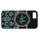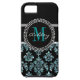 Girly Blue Glitter Black Damask Personalised Case-Mate iPhone Case