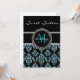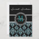 Girly, Black Damask Pattern with Teal Blue Glitter Photo Effect PRINTED. Personalise with your name and your monogram initial. Design by Elke Clarke ©. Graphics licensed for use. Makes a great sweet sixteen party invitation for her.