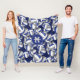 This fun team colours volleyball fleece blanket for girls features a pattern of stylised blue, grey and white volleyballs of varying sizes turned every which way on a customisable blue background - the volleyballs' blue and grey panels are blended with an artsy, girly floral pattern - personalise with athlete's name and monogram or jersey number - by katz_d_zynes
