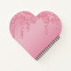 Girly Blush Pink Sparkle Glitter Drips Monogram Heart Shaped Notebook with fashion faux blush pink glitter drips on a chic bubblegum pink background with your custom monogram and name. Designed by Cedar and String. If you need assistance or matching items, please contact us at cedarandstring@gmail.com