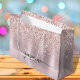Girly Glam Blush Rose Gold Glitter Metallic Monogram Name Signature Script Custom Personalised Gift Bag. This design featuring your first name in a pretty hand lettered style swash tail font signature typography (or calligraphy) on blush pink rose gold faux metallic foil with glam sparkle glitter border. These are easy to customise it. This feminine gift bag great for housewarming gift, also for birthday, mother’s day, wedding, sweet 16 birthday party, bridal shower, baby shower, for graduation party gift and It’s for the girl who loves unique sparkle stylish things.