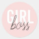 Girly blush typography script girl boss classic round sticker