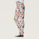 Girly and whimsical butterfly pattern leggings featuring an illustration of pink, yellow, blue butterflies on a pink background. There are also green leaves.