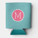 Girly Chevron Pattern with Monogram - Pink Teal Can Cooler