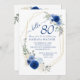 Girly Chic Navy Blue Floral 80th Birthday Invitation