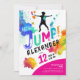 Young adventurers, get ready for an exciting trampoline party filled with high-flying fun! Our vibrant invitations feature bold fonts, a kid silhouette leaping on a modern, colourful brush-painted typography, with each letter in a different hue. The design is enhanced with playful colour splatters in a rainbow splash of paint, all against a clean white background. Personalise your invitation with customisable text, available in both print and digital formats. The reverse side pops with a bright, eye-catching magenta pink. Perfect for kids or teens who love adventure and excitement. Don't miss out on this amazing celebration—mark your calendars and prepare for a day of high-flying fun!
