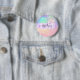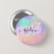 Girly and cute button with a colourful pink, peach, purple, lilac, blue and green unicorn rainbow hearts sparkly background. Your custom name and monogram are written in an elegant hand lettered script with a lilac purple unicorn paint brush strokes stripe background. A perfect birthday or Christmas gift!