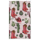 This festive girly country cowgirl Christmas gift bag features a pattern of hand-drawn western illustrations of cowgirl boots, cowgirl hats, cactus, mittens & holly berries, all against a background full of tiny stars.