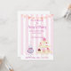 Girly Cupcakes and Candy Jar Birthday Invitation. Perfect invite for a Girl's birthday party. Design features a pink and white candy stripe background, a glass candy jar filled with pink and navy sweets complete with a candy buffet label and ribbon. A 3 tier cupcake stand with selection of delicious cupcakes and some pretty bunting! Change the wording to whatever you wish!