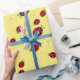 girly cute ladybug and daisy flower pattern yellow wrapping paper