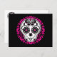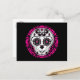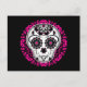 My version of a super cute sugar skull in white, hot pink, and black with lots of elegant accents on a coordinating background. Shown here on a postcard.