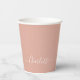 Personalised dusty pink custom modern script name text monogram solid plain colour girly stylish elegant chic dusty pink and white text party paper cups. Customise, personalise it with name, quote, phrase, or text.