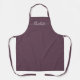 Personalised eggplant purple custom modern script name text monogram solid plain colour girly stylish elegant chic eggplant purple and white text kitchen Apron. Customise, personalise it with name, quote, phrase, or text.