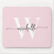 Girly Elegant Blush Pink Monogram Name Script Mouse Pad