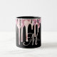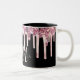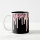 Girly Elegant Dripping Monogram Black Pink Name Two-Tone Coffee Mug