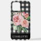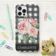 Girly Floral Black White Buffalo Plaid Name iPhone 12 Pro Max Case - Black and white buffalo plaid with a touch of pink floral makes this iPhone case a lovely touch for your precious iPhone. Our high quality template makes it so easy for you to personalise your iPhone case. If you would like to change the font, simply choose the "customise further" link. If you need assistance personalising your case, please don't hesitate to reach out. Case is part of a collection.