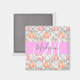 Girly monogram magnet with spring / fall floral pink and peach pumpkins and a white and grey background. Your custom name and monogram are written in an elegant hand lettered grey and white script with a pink background. You can change the text colour and font style and size using the customise option.