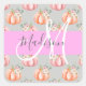 Girly Floral Grey Pink Peach Pumpkin Monogram Name Square Sticker