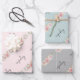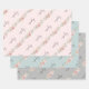 A fun, girly festive trio of wrapping sheets. All sheets have some gift-giving fun with 'No peeking' typography. The sheets have background colours of Christmas pink, sage, green and silver grey. Girly Floral No Peeking Festive Wrapping Paper Sheets.
