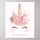 Girly Floral Unicorn Rose Gold Personalised Poster