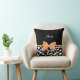 A girly black and white giraffe print throw pillow with a cute orange ribbon tied into a stylish bow. Personalise this trendy animal print design by adding your name. Reverse side has a black and white giraffe pattern. Flat printed image, not actual bow.