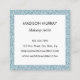 This chic, girly and glam square business card has a light blue silver glitter sparkles background on both sides. On the front of the business card is your first name in an elegant black script with a large monogram initial in white behind it. Then on the back is your name, job title and contact details with a white background. Easily personalise this business card. Click "customise further" to change the text colour and font style and size. This business card is perfect for a makeup artist, hairstylist, beauty consultant, events planner or salon owner.