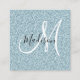 Girly & Glam Blue Silver Glitter Sparkle Monogram Square Business Card