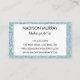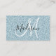 This chic, girly and glam business card has a light blue silver glitter sparkles background on both sides. On the front of the business card is your first name in an elegant black script with a large monogram initial in white behind it. Then on the back is your name, job title and contact details with a white background. Easily personalise this business card. Click "customise further" to change the text colour and font style and size. This business card is perfect for a makeup artist, hairstylist, beauty consultant, events planner or salon owner.