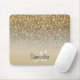 Girly Glam Gold Leopard Print Glitter Monogram Mouse Pad