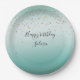 Girly Glam Gold Sparkle Confetti Mint Ombre Paper Plate