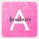 Girly Glam Hot Pink Glitter Sparkles Monogram Name Square Sticker