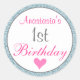 Girly Glam Pink & Light Blue Glitter 1st Birthday Classic Round Sticker
