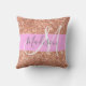 Girly Glam Pink Peach Gold Glitter Monogram Name Cushion